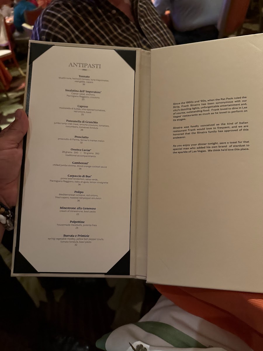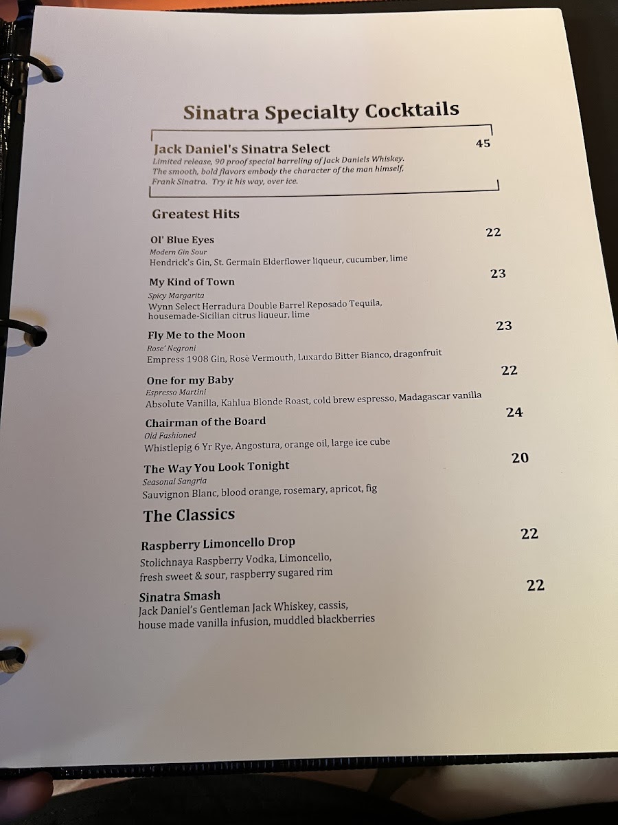 Sinatra offers a refined Italian dining experience, where the menu reflects both classic flavors and modern finesse. Guests can expect thoughtfully prepared dishes that complement the elegant, inviting atmosphere of the restaurant.